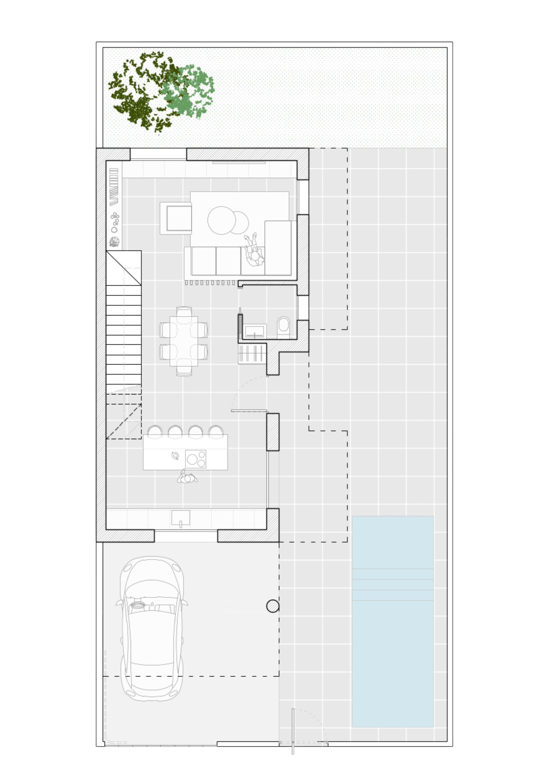Disfruta de tu piscina privada revestida en porcelánico y cascada. Una cochera doble con preinstalación para carga eléctrica, ideal para un estilo de vida moderno y sostenible.